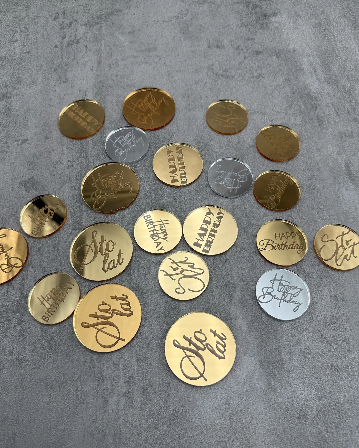 Ten produkt ma wiele wariantów. Opcje można wybrać na stronie produktuMini dekory grawerowane na tort Happy birthday