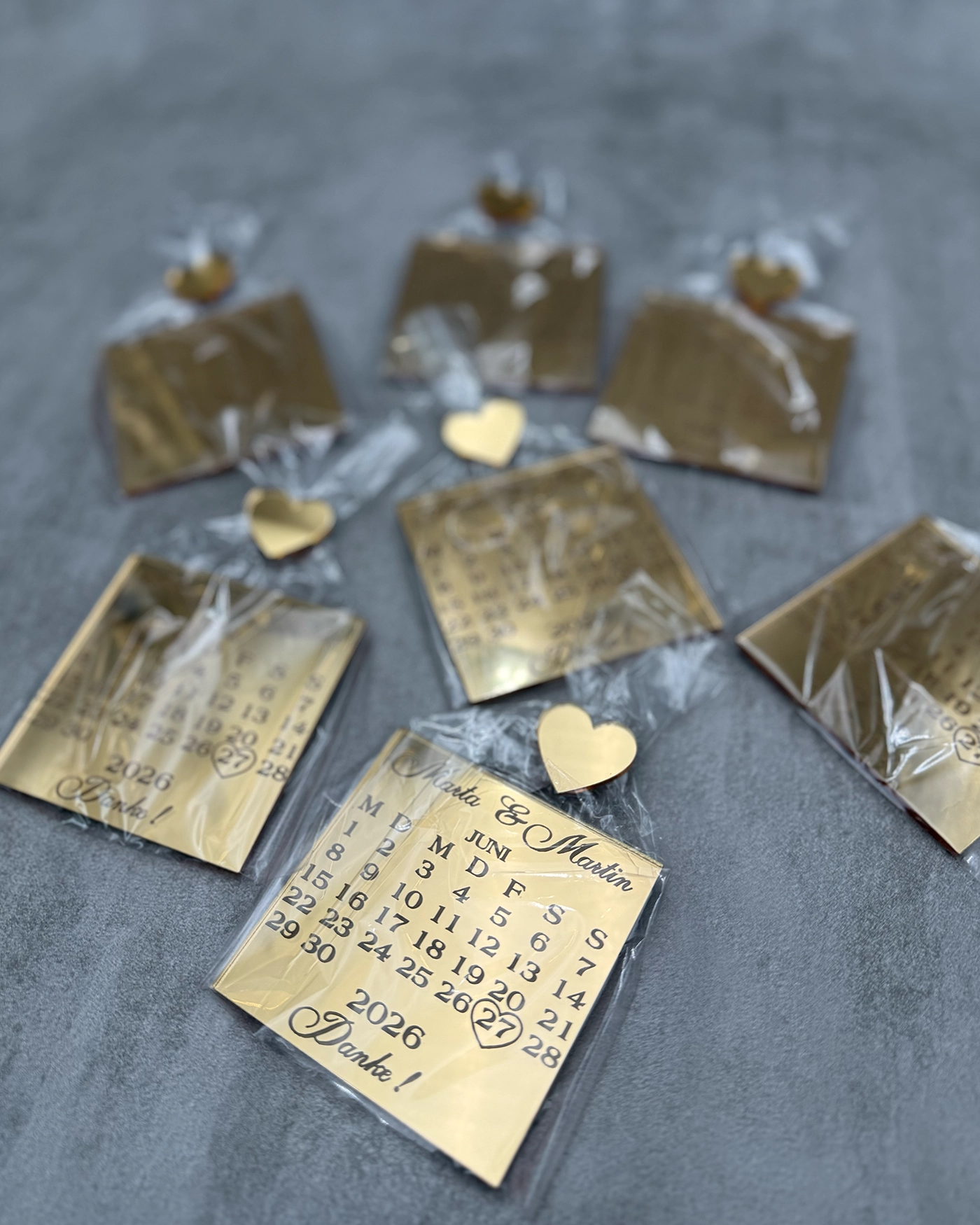 Wielojęzyczność bez granic: Realizujemy projekty w dowolnym języku. Niezależnie od tego, czy planujecie wesele międzynarodowe, czy po prostu chcecie napisy po angielsku, niemiecku, francusku czy włosku – dopasujemy nazwy dni tygodnia i miesięcy do Waszych potrzeb.