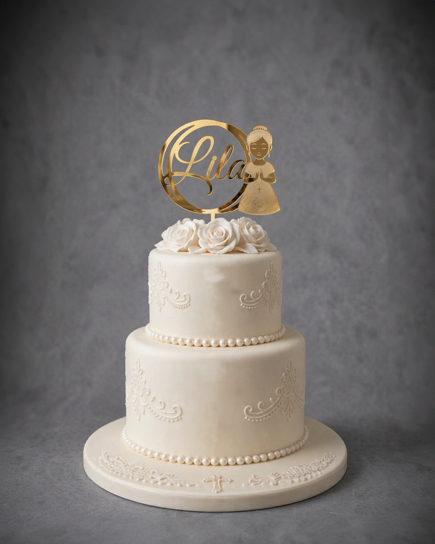 Na każdym topperze umieszczamy imię dziecka co nadaje wypiekowi indywidualny i uroczysty charakter.