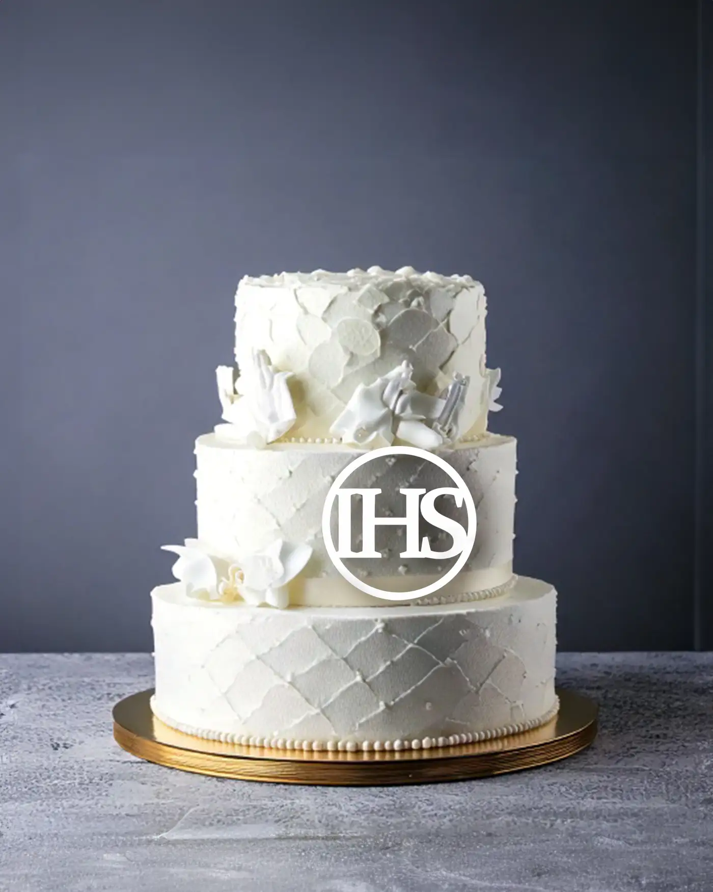 Topper z symbolem IHS to elegancka i symboliczna dekoracja tortu, idealna na uroczystości religijne.